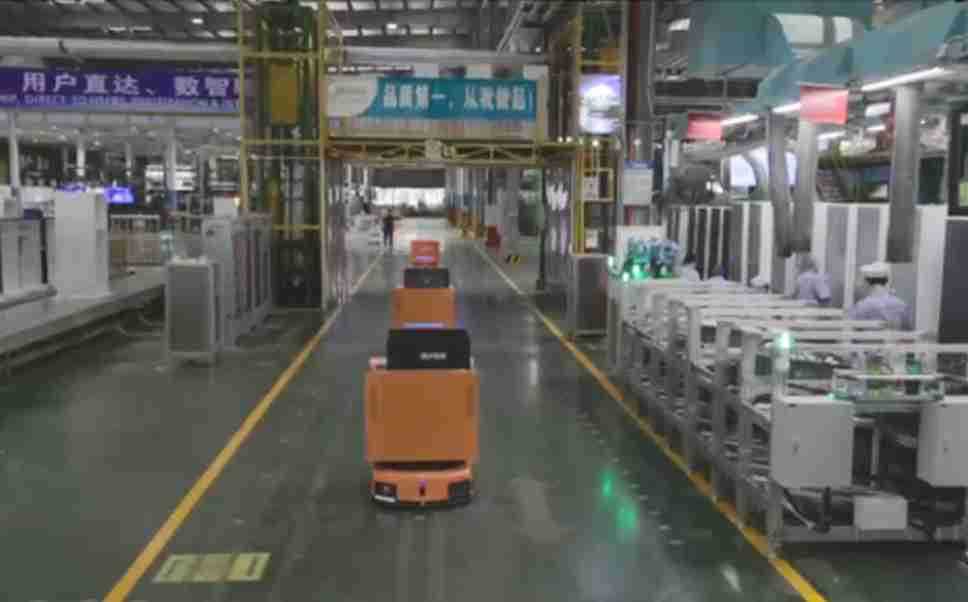 为车载冰箱物流配送打造的智能解决方案,,,,包含产中物流通过潜伏举升AMR搬运至线边,,产后成品物流智能仓储,,流程包含产中物流智能齐套入库,,,线边安灯叫料AMR智能配送至线边,,成品入库、、出库,,通过无人堆高车机器人,,智能仓储管理替代人工作业管理,,,,实现更高存储、、更高效率、、、更具柔性化的解决方案。。